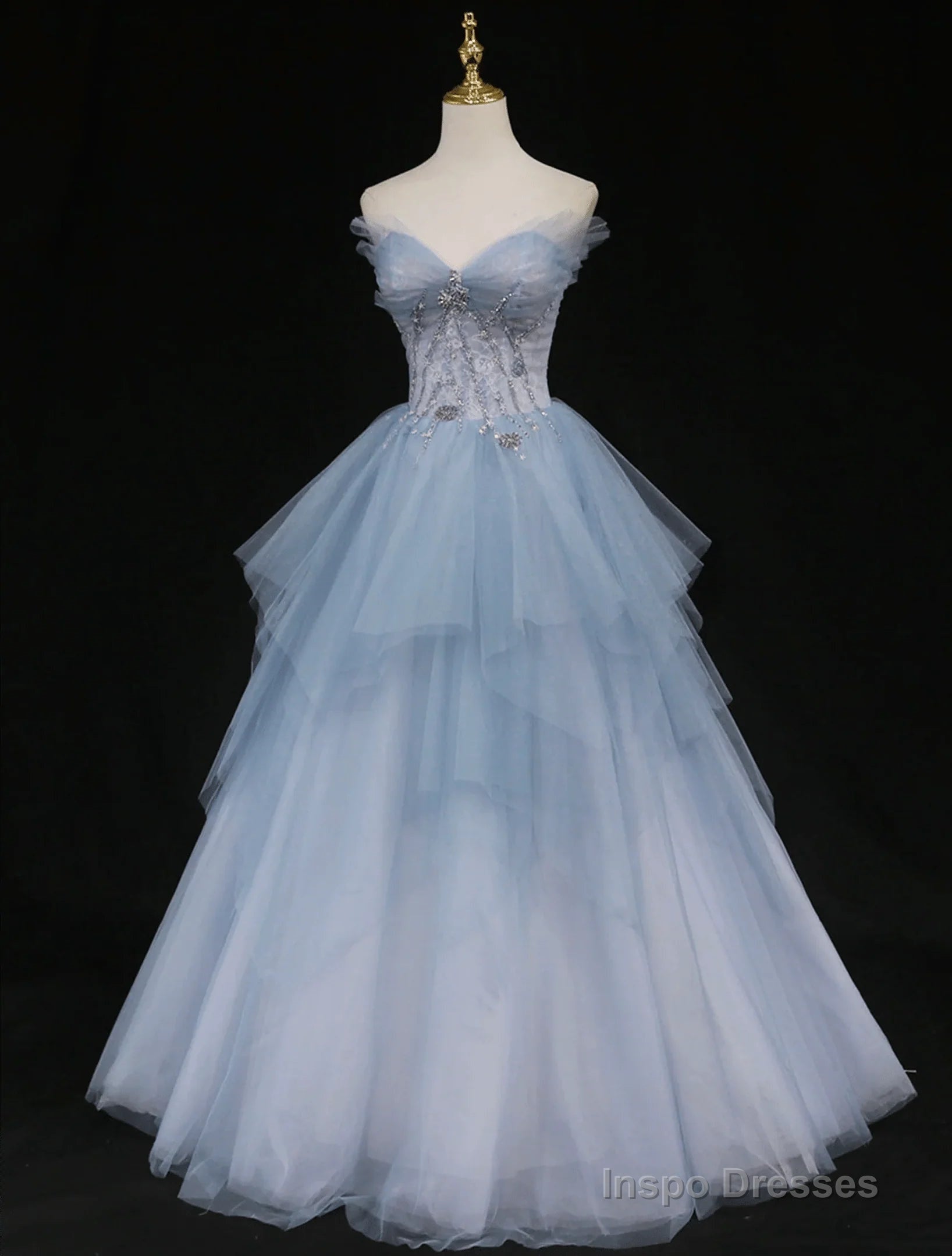 Blue Beaded Sweetheart Long Evening Dress Blue Prom Dress prom dresses shops