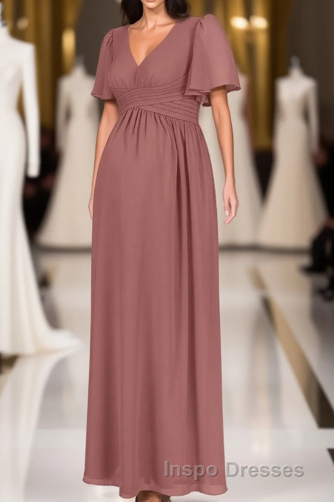 Brown V-Neck High-Waist Long Maternity Bridesmaid Dress