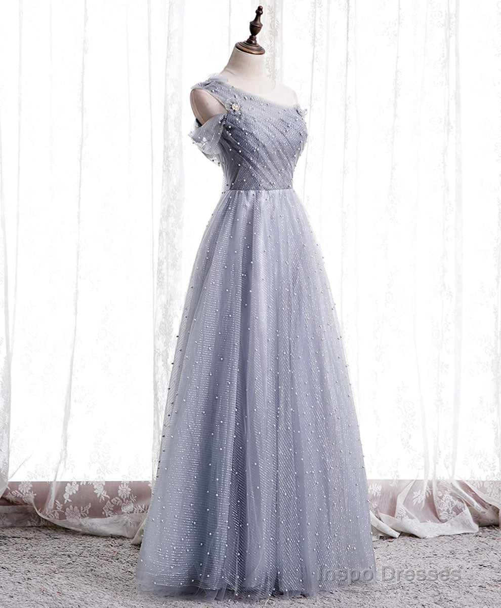 Gray Aline Long Prom Dress, One Shoulder Gray Formal Party Dresses