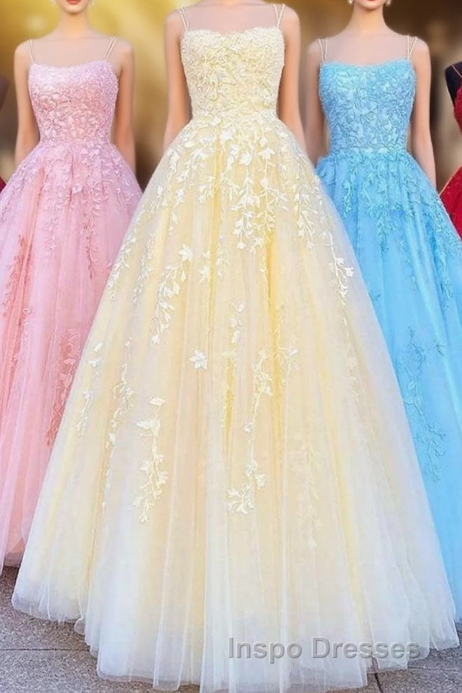 Princess Straps Long Evening Prom Dress with Lace Appliques