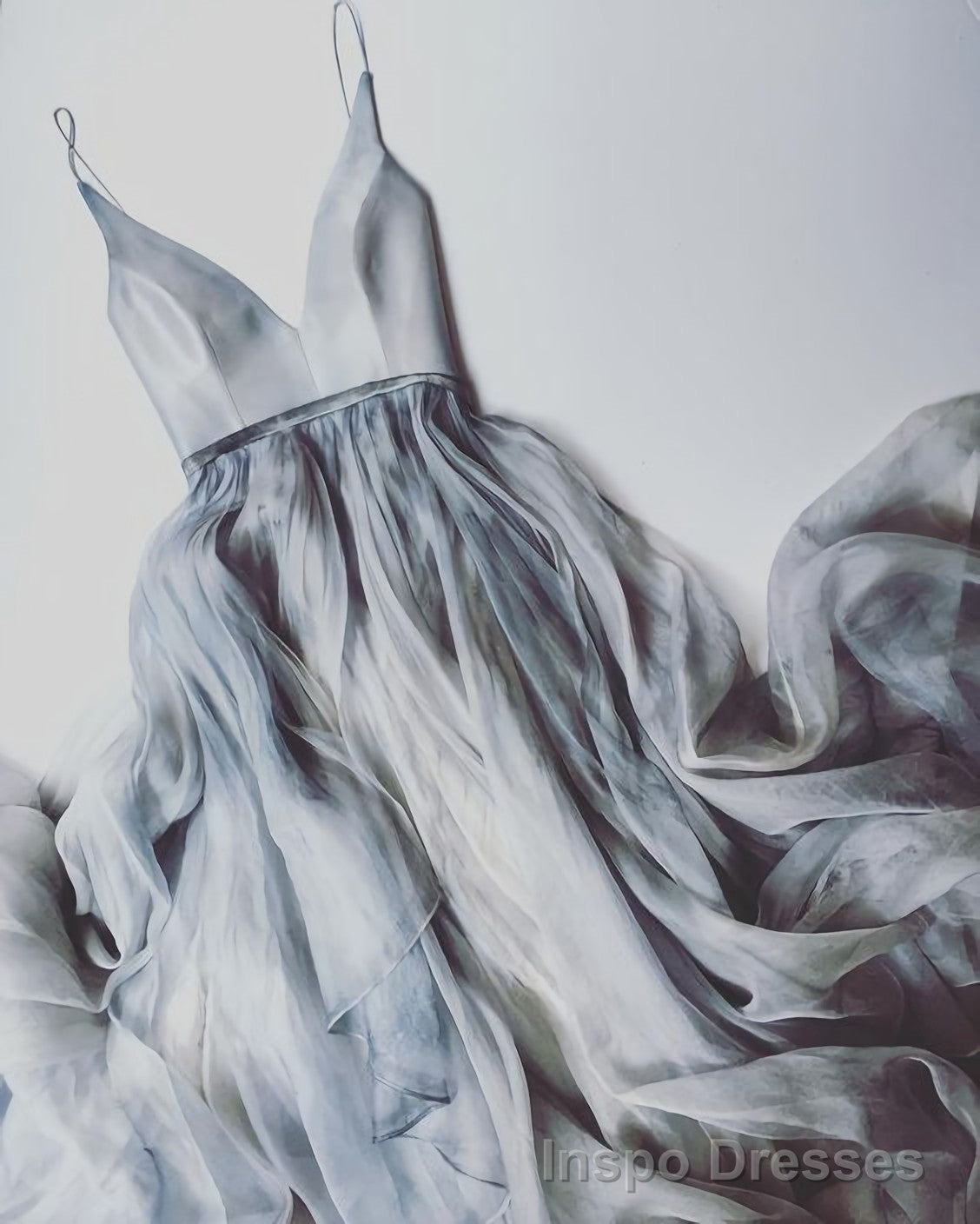 Spaghetti Straps V Neck Long Senior Women Prom Dresses