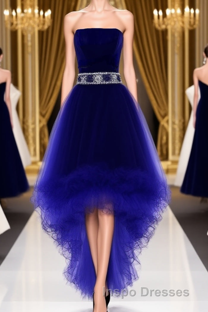 Wine Red Homecoming Dress, Burgundy High Low Party Dress with Beadings